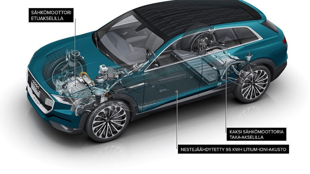 Audi on vahvistanut, että sen Frankfurtin autonäyttelyssä esittelemä e-tron quattro maasturikonsepti on merkin ensimmäinen pelkällä sähköllä kulkeva automalli.