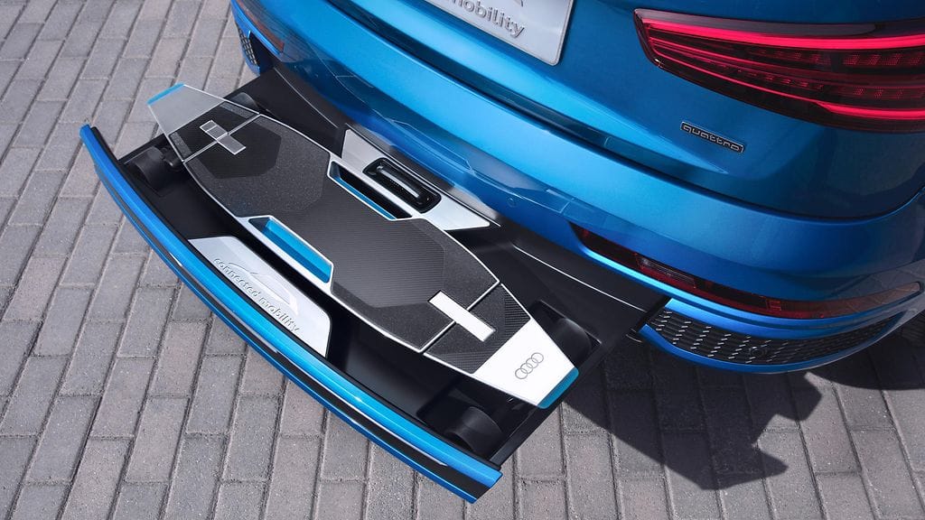 Auton takapuskuriin on tehty paikka sähkökäyttöiselle rullalaudalle. Metrin mittainen lauta latautuu kätevästi silloin, kun se on puskurin sisällä olevassa telineessä.