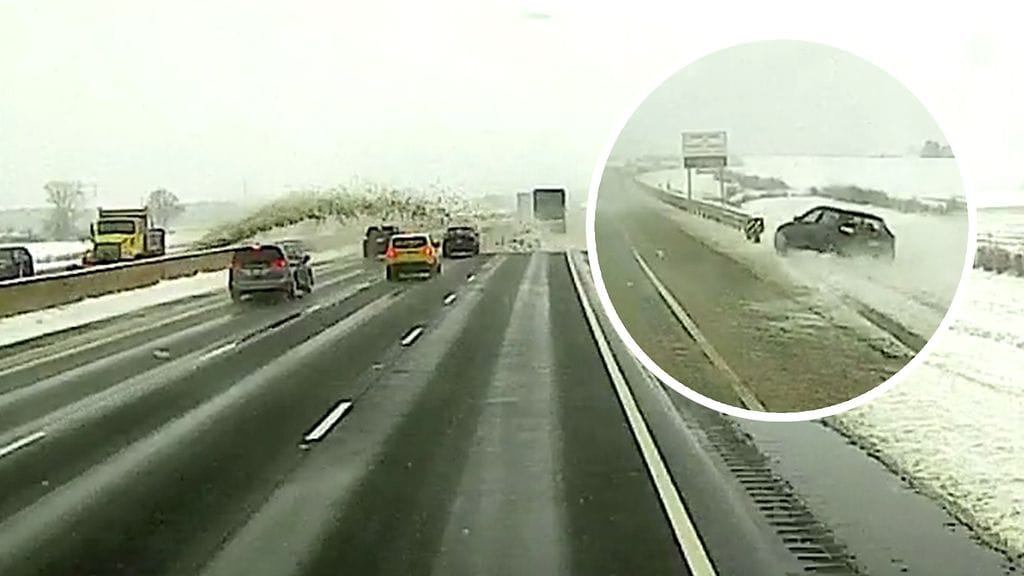 Yhdysvaltain Ohion osavaltiossa kuorma-auton kojelautakameralle tallentui, kun moottoritietä aurannut aura-auto kolasi isossa kaaressa tien pinnassa olleen lumisohjon vastaantulevien kaistalle.