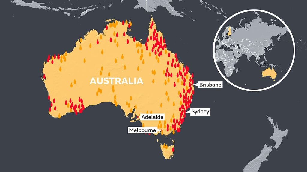 Palot ovat olleet niin laajoja, että ne on voidaan havaita avaruudesta asti. Jos vertailukohdaksi otetaan Suomi, paloalue vastaisi yli puolta Lapin maakunnan aluetta. Toisella tapaa suhteutettuna paloalue on noin kuusi kertaa Uudenmaan kokoinen alue.