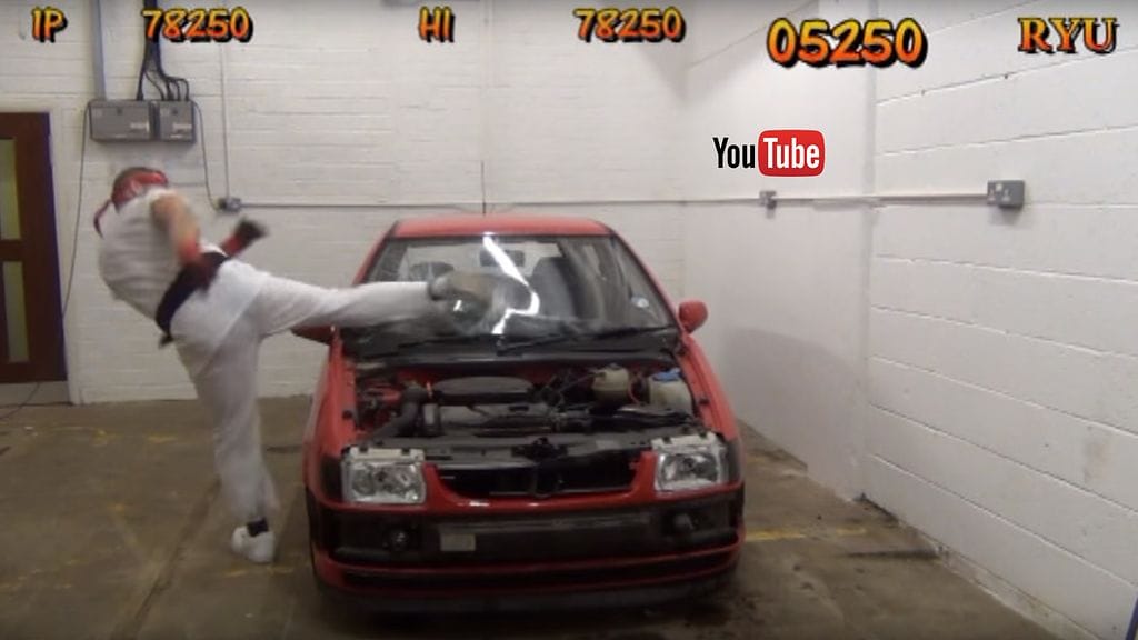 Oheisella videolla kaveri paukuttaa vanhan Volkswagen Polon päreiksi niin sanotusti paljain käsin. Mallia on haettu legendaarisesta Street Fighter -pelisarjasta.