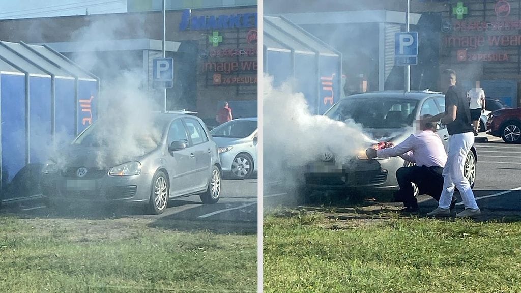 Auto oli alkanut savuttamaan ajon aikana, jolloin kuski oli suunnannut kaupan parkkipaikalle, pelastuslaitokselta kerrotaan MTV Uutisille.
