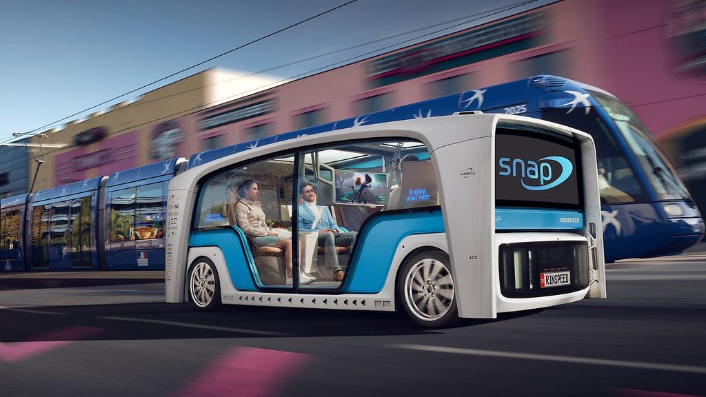 Myös pieni sveitsiläinen valmistaja Rinspeed on mukana messuilla. Rinspeed tähtää mukaan automatisoituvaa ja muuttuvaan kaupunkiliikenteeseen, jonne se haluaa tarjota vaihtoehdon autoilua uudella tavalla lähestyvällä Snap-konseptilla. Konseptissa auto on hyödynnettävissä liikkumisen lisäksi myös aiempaa laajemmin paikallaan ollessaan.