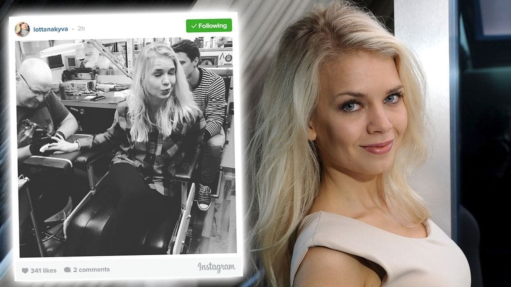 Ex-missi Lotta Näkyvän ilmeestä päätellen tatuoinnin ottaminen tekee kipeää.