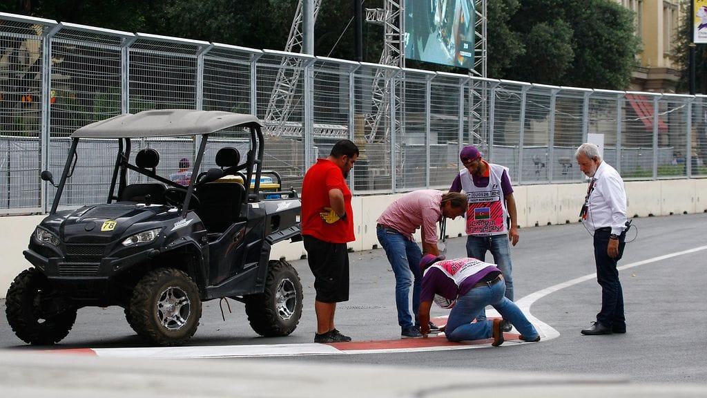 Ratavirkailijat viettivät työntäyteisen yön Euroopan GP:n kisanäyttämönä toimivan Bakun F1-katuradalla.