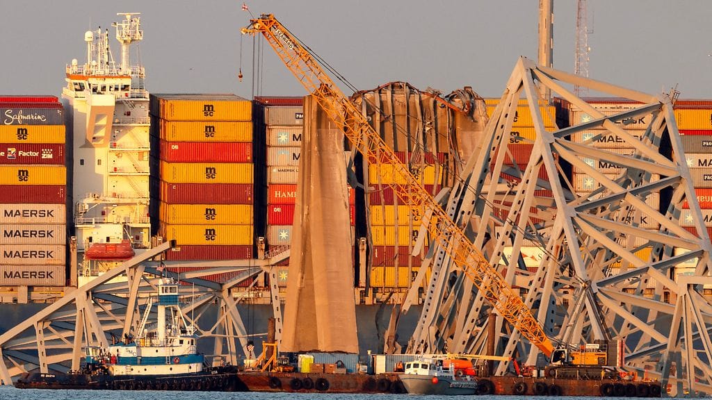 Jättimäisessä operaatiossa nostettiin arviolta 200 tonnia painava siltarakenne. Silta romahti, kun Dali-rahtialus törmäsi siihen. Viranomaiset ovat kertoneet, että satama-alueen raivaustyöt ovat hankalia.