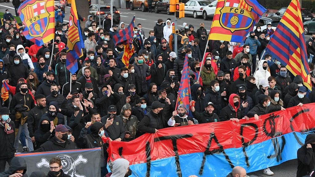 Barcelonan fanit eivät pääse koronarajoitusten myötä katsomaan peliä Camp Noulle. Se ei kuitenkaan estänyt heitä kokoontumasta ennen ottelua joukolla.