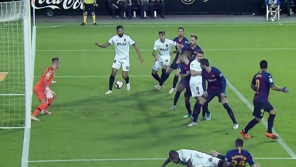 Pääkuvan videolla Valencian avausmaali Barcelonan verkkoon.