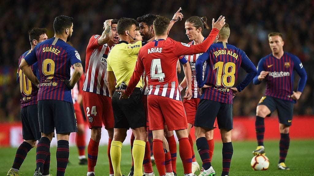 Atletico koki kovan takaiskun ottelun avausjaksolla, kun tähtihyökkääjä Diego Costa sai punaisen kortin solvattuaan rajuin sanoin ottelun erotuomaria.