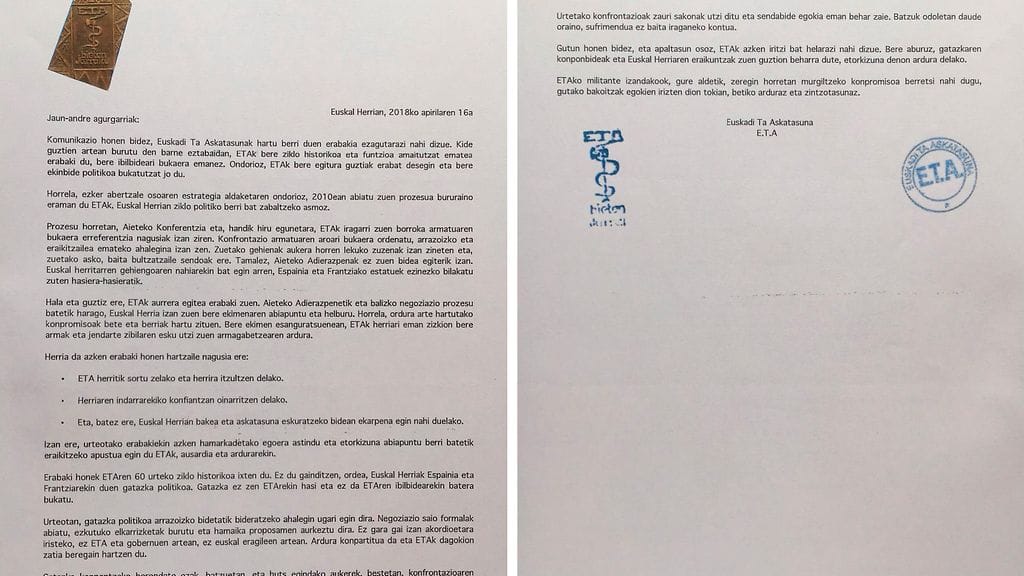 – ETA on hajoittanut täydellisesti kaikki rakenteensa ja lopettaa poliittisen toimintansa, kirjeessä kerrotaan.