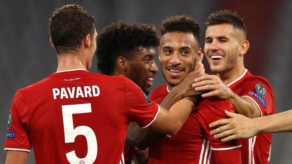 Bayernin pallollinen pelaaminen alkoi soljua avausjaksolla, ja viime kauden Mestarien liiga -finaalin ainoan maalin tehnyt Kingsley Coman avasi saksalaisseuran hanat. Joshua Kimmich jakoi silkkisen keskityksen maalille, ja pallon nopeasti kesyttänyt Coman jatkoi sen häkkiin.