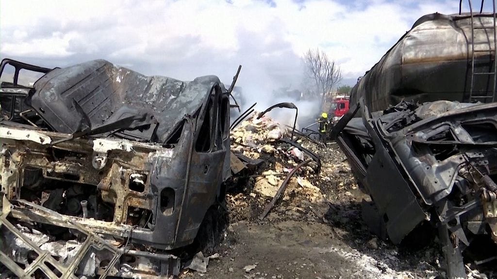 Videolla näkyy, kuinka autot ovat tuhoutuneet kokonaan.