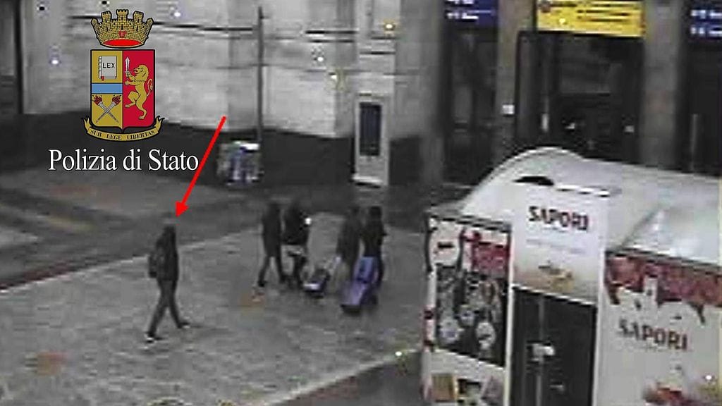 Kuva on tallentunut Italian Milanon keskusrautatieaseman valvontakameralle paikallista aikaa 00.58 jouluaaton aattona, eli 23. joulukuuta 2016. Kuvan kerrotaan osuneen hetkeen, jolloin Amri saapuu asemalle.