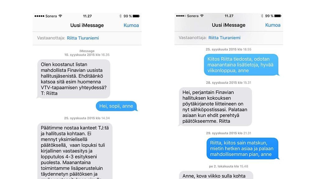 Liikenne- ja viestintäministeriö julkisti eilen ministeriön ja lentoasemayhtiö Finavian hallituksen entisen puheenjohtajan Riitta Tiuraniemen välistä viestinvaihtoa.