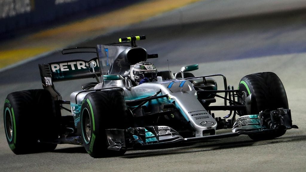 Valtteri Bottaksen kilpailu Singaporessa hankaloitui entisestään, kun juomapullo ei toiminut. Hän taisteli kisan kolmoseksi.