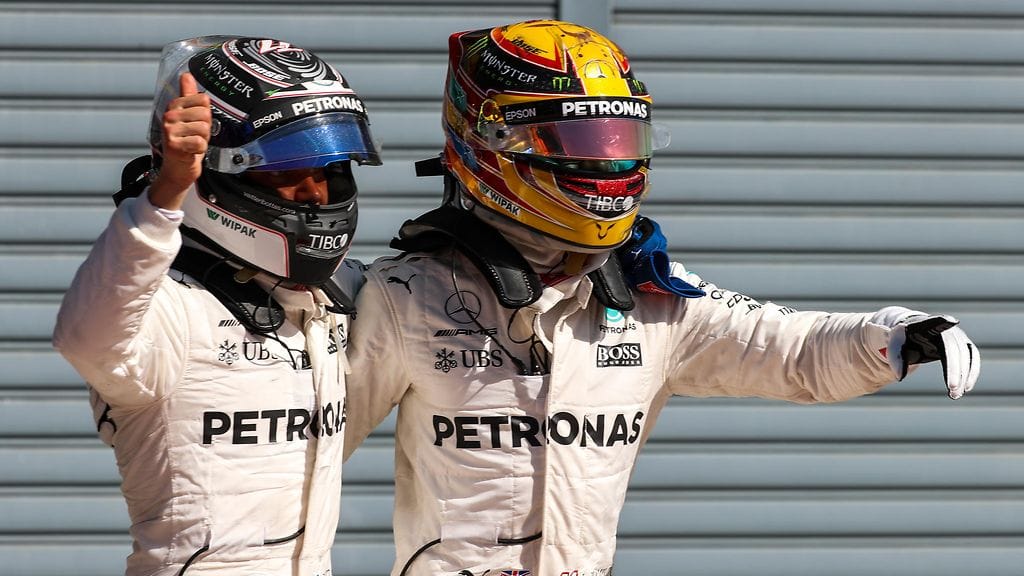 – Lähtökohdat kisaan eivät olleet parhaat mahdolliset, mutta kun nelosruudusta lähtee ja tulee toisena maaliin, niin ei se nyt huono päivä ole. Vauhti oli hyvää koko kisan ajan. Auto oli ihan älytön tänään, meillä molemmilla oli tosi kova kyyti Lewiksen kanssa, Bottas kommentoi.
