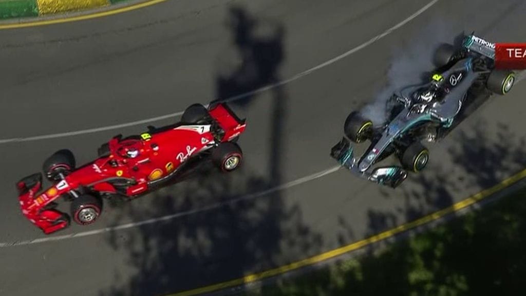 Bottas tuli kovempaa vauhtia takaa mutkaa lähestyttäessä eikä tiennyt, onko Räikkönen väistymässä pois edestä. Ferrari jäi ajolinjalle, jolloin Bottas joutui ohjaamaan Mercedeksensä hiekalle.