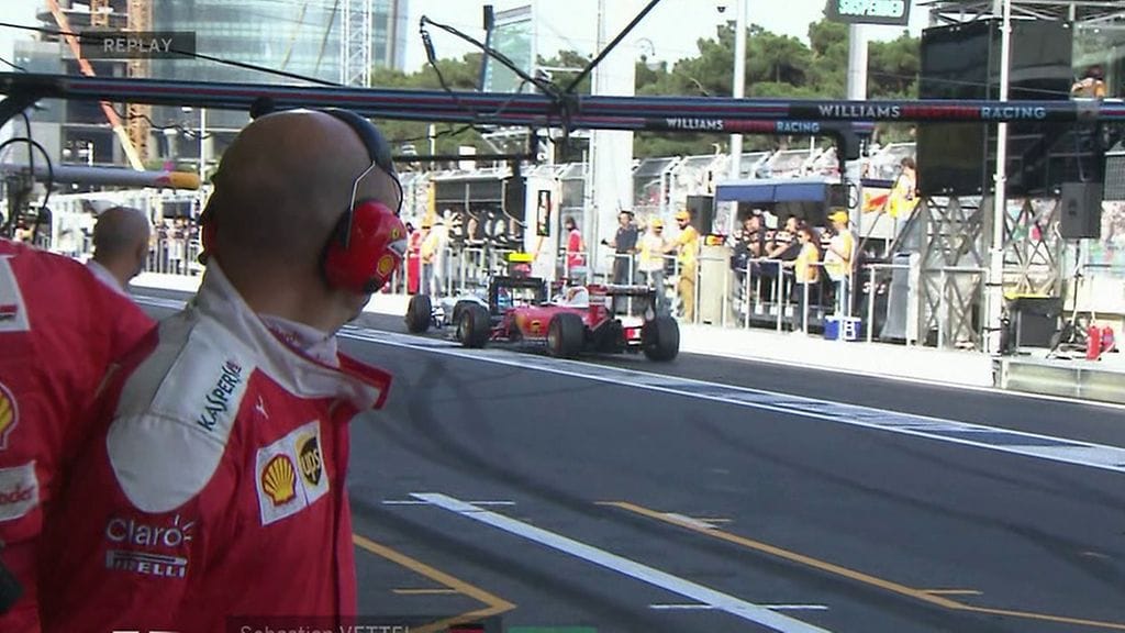Autot ryhmittyivät kolmososiossa varikkosuoralle session uudelleen käynnistymistä varten, kun Williams päästi Bottaksen suoraan Ferrarin Sebastian Vettelin eteen.