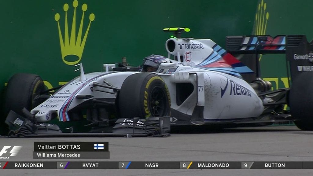 Williamsin Valtteri Bottas pisti viimeisen kierroksen kolarin täysin Kimi Räikkösen piikkiin.