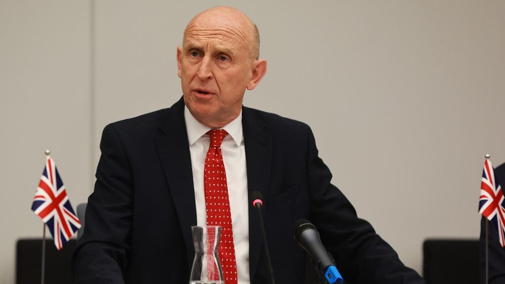 John Healey kertoi asiasta Ukrainan aseapua koordinoivan Ramstein-ryhmän kokouksen yhteydessä Brysselissä.