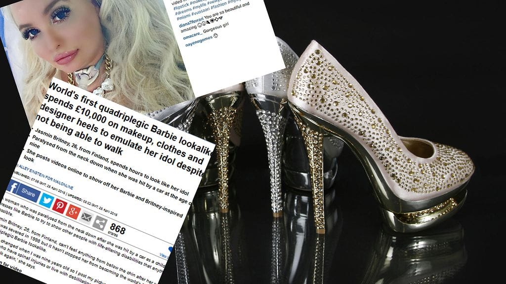 26-vuotias Jasmin Britney, syntymänimeltään Katarina Koskiranta, ei tunne mitään leukansa alapuolelta. Se ei kuitenkaan ole estänyt häntä muuttumasta maailman ensimmäiseksi neliraajahalvaantuneeksi Barbien ja Britney Spearsin kaksoisolennoksi. Hän on käyttänyt yli 10 000 euroa meikkeihin, vaatteisiin ja merkkikenkiin elääkseen unelmaansa.