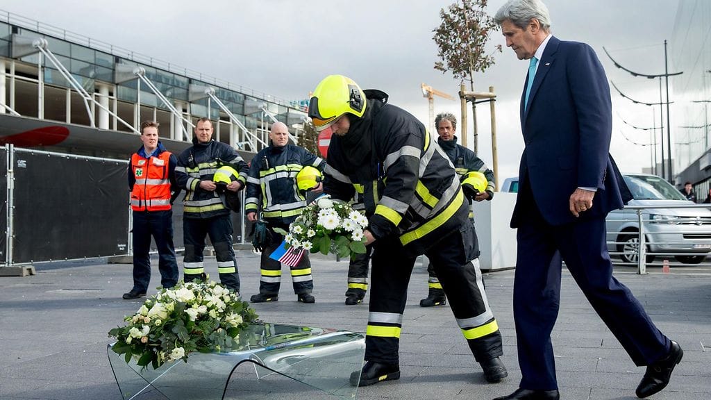 Kerry saapui tänään vierailulle Brysseliin osoittamaan solidaarisuutta belgialaisille.