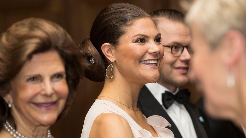 Ruotsin kruununprinsessa Victoria varasti katseet Tukholman kuninkaanlinnassa järjestetyillä illallisilla.