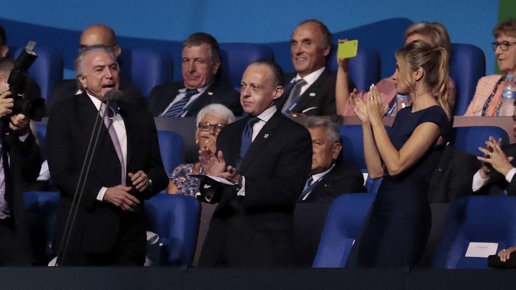 Kisojen avaaminen ei sujunut aivan välikohtauksitta, sillä yleisö buuasi kuuluvasti Brasilian uudelle presidentille Michel Temerille hänen julistaessaan kisoja avatuksi. Temerin vastustajat ovat protestoineet Brasiliassa sen jälkeen, kun ex-presidentti Dilma Roussef erotettiin virastaan.
