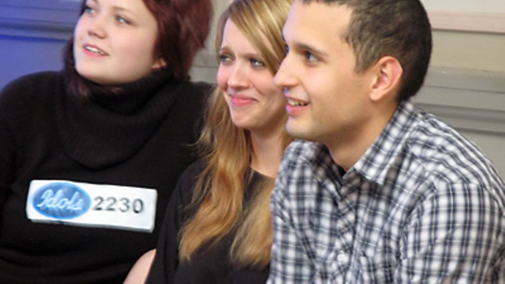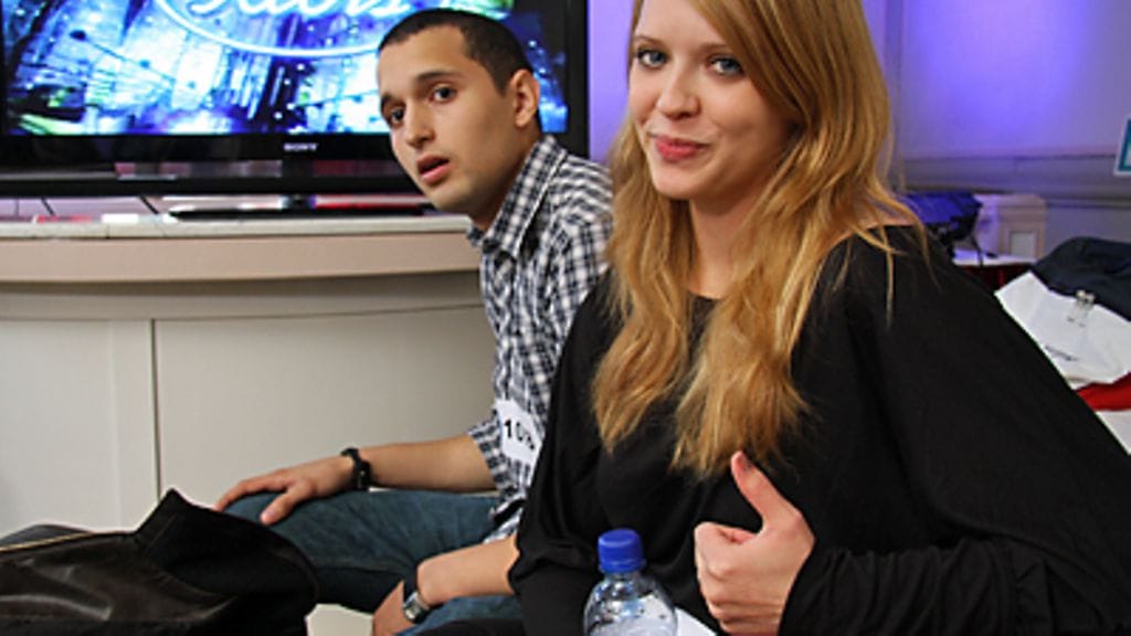 Idols-pari Camilla Hansson, 19, ja Daniel Sandgren-Diago, 19, treenasi teatteriviikonloppuun leikin varjolla. Toinen oli vuoronperään tuomari ja toinen koelaulaja. Camilla valitsi itselleen Nina Tapion roolin. – Ja minä olin Jone, lisäsi Daniel.