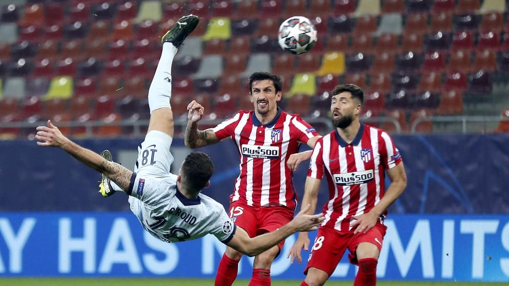 Chelsean ranskalaishyökkääjä Olivier Giroud teki häikäisevän upean osuman, kun Chelsea kukisti Atletico Madridin 1-0-lukemin Mestarien liigassa.