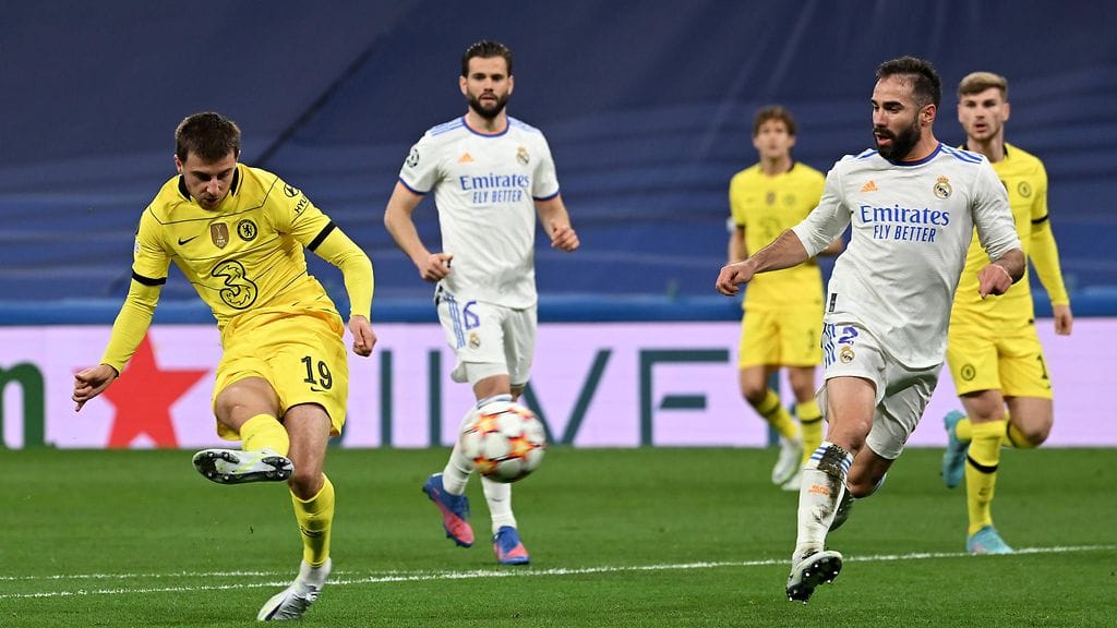 Real Madridin ja Chelsean toinen osaottelu Mestarien liigan puolivälieriessä sai sähäkän alun, kun Chelsea avasi maalihanat vartin pelin jälkeen. Chelsean Mason Mount laukoi näppärän kuvion päätteeksi pallon voimalla Realin verkkoon. Real voitti avausosan Lontoossa 3-1, joten Chelsealla riittää vielä kirittävää. Mountin komean osuman näet yllä olevalta videolta.