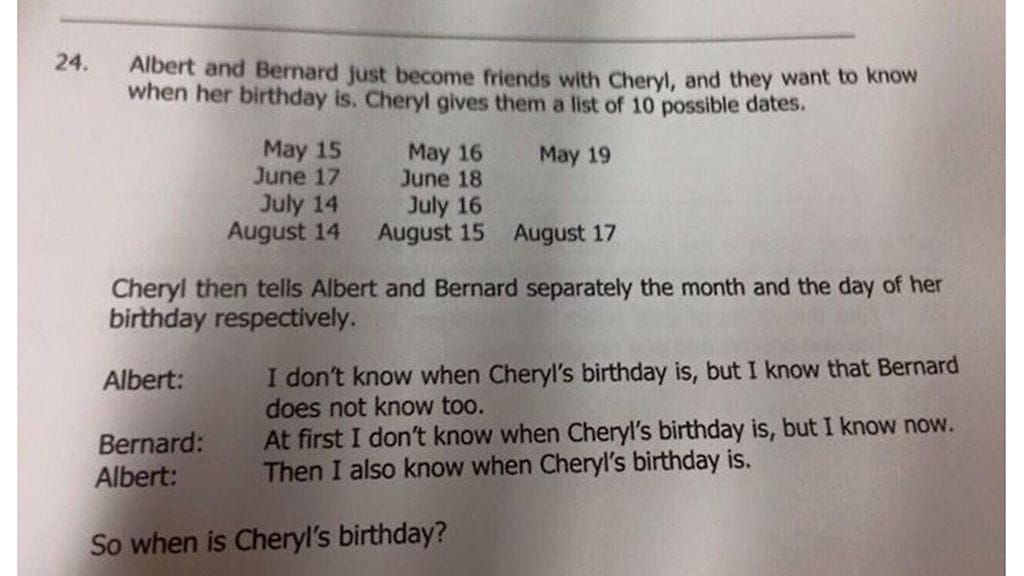 Cherylin syntymäpäivä: Osaatko ratkaista tämän koululaisten tehtävän?