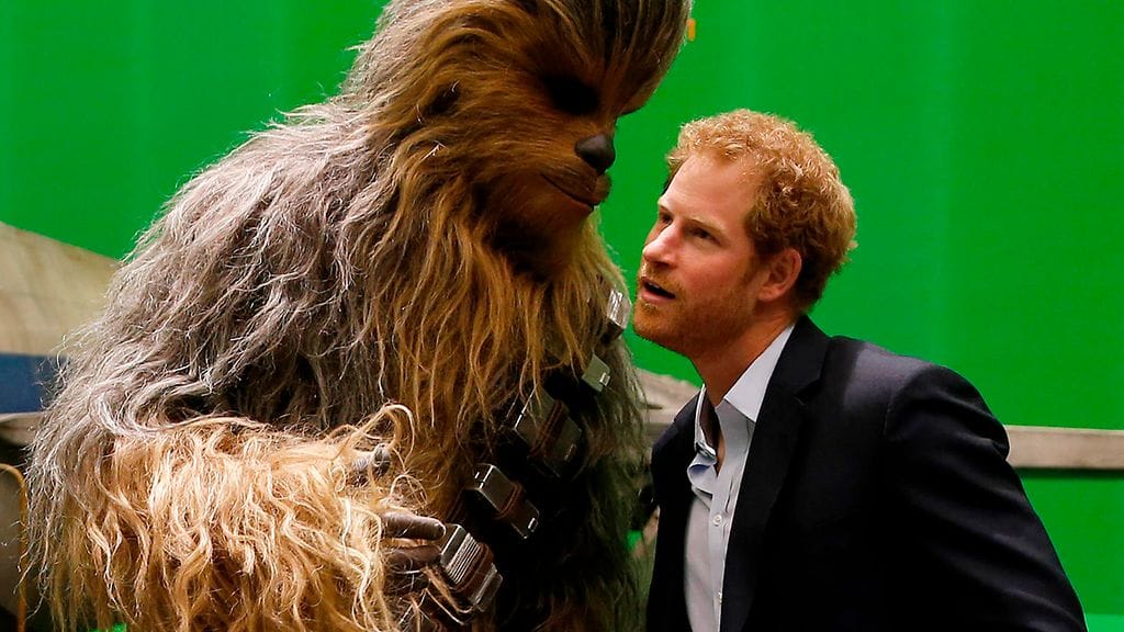 Suomalaisnäyttelijä Joonas Suotamo pääsi halaamaan Britannian kuninkaallisia Chewbacca-puku päällään.