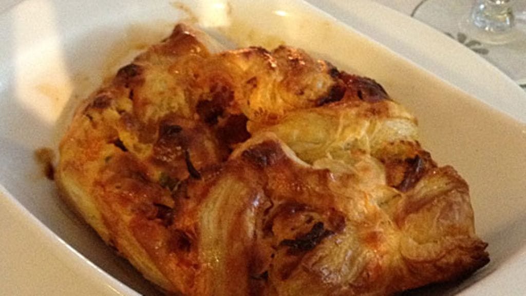 Suolainen, lämpimänä tarjottava alkuruoka.