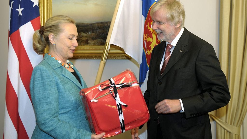 Tuomioja kertoi antaneensa Clintonille laukun lisäksi myös Kalevala-korun.