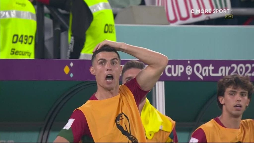 Portugalin maalivahti Diego Costa ei huomannut Ghanan Inaki Williamsia, joka kärkkyi hänen selkänsä takana. Ghanalaispelaaja nappasi jo pallon, mutta sitten hänelle kävi kylmät. Vaihtoon otettu Cristiano Ronaldo seurasi tilannetta kauhunsekaisella katseella.