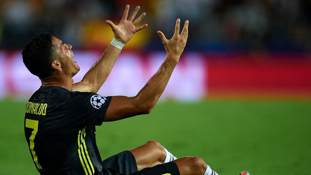 Ronaldo ajettiin suihkuun Valencia-vierasottelun 29. minuutilla, kun hän rikkoi vastustajan koskemattomuutta. Juventus-tähti taisteli Valencian Jeison Murillon kanssa, ja Murillo meni nurmen pintaan hieman heppoisesti.