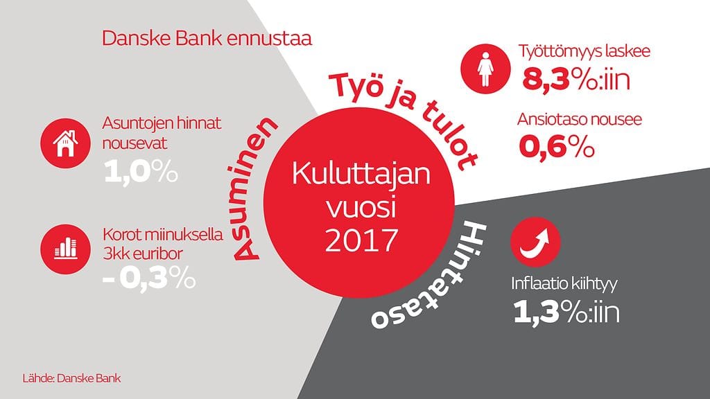Danske Bank ennustaa, että työttömyys laskee ensi vuonna 8,3 prosenttiin.