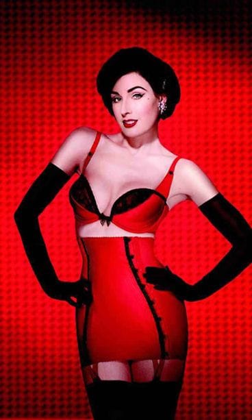 Dita Von Teese tietääkin, kuinka seksikkyydellä voi kiusoitella: burleskitaiteilija on ottanut vaikutteita omaan pikkutuhmaan tyyliinsä 40- ja 50-lukujen muodista, johon kuuluvat olennaisesti korsetit, pitsi, saumasukat ja sukkanauhat.