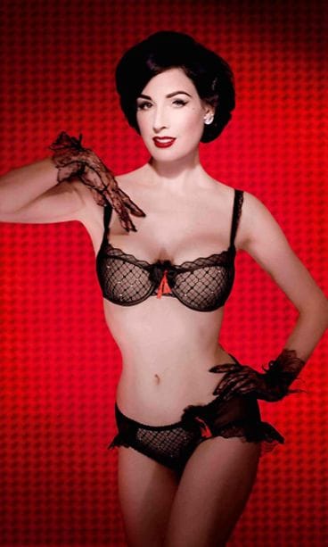 Burleskitaiteilija Dita Von Teesen alusvaatemallistot henkivät paheellisen kotirouvan, pin-up -kaunottaren ja kiusoittelun henkeä.