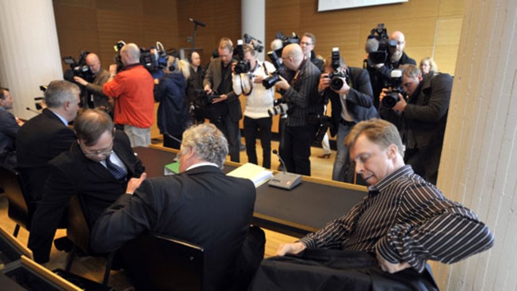 Toimittajia paetessaan hän pudotti osan tavaroistaan käräjäoikeuden lattialle.