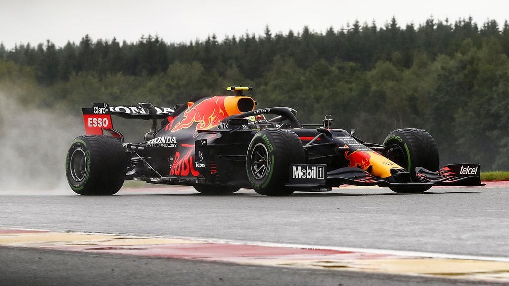 F1:n sunnuntain Belgian GP sai todellista draamaa jo ennen lähtöä, kun Red Bullin Sergio Perez täräytti seinään.