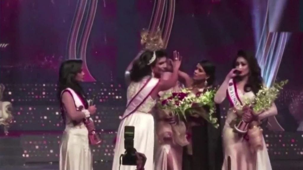 Tämän vuoden Mrs Sri Lanka World -kilpailu sai erikoisia käänteitä, kun tittelistään luopuva missi repi kruunun seuraajansa päästä kesken seremonian.