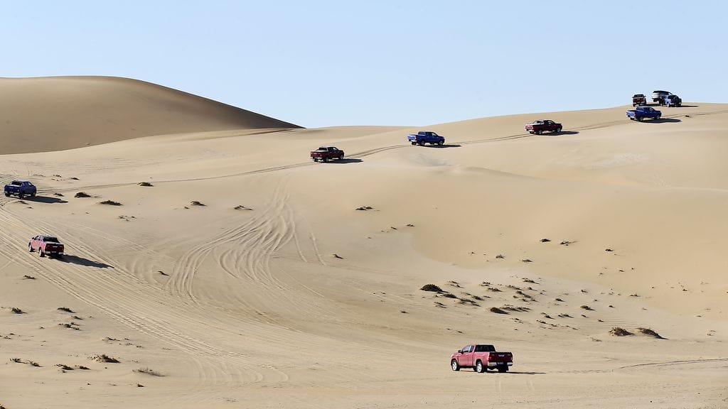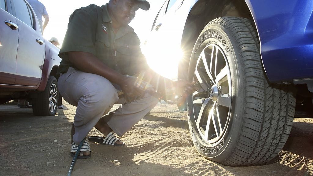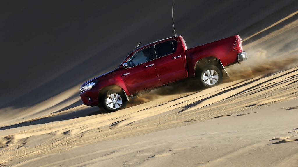 Jos joku on käynyt harrastamassa jäätiköllä ajoa esimerkiksi Islannissa, dyyneillä ajoa varten tarvitaan samanlainen alustus. Rengaspaineet pudotetaan alas, Hiluxin kohdalla 0,8 bariin. Näin saadaan auton alle hieman lisää kantavaa pintaa.