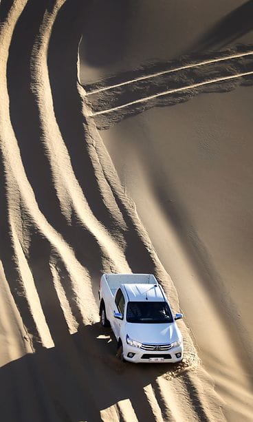 …dyyneillä on kuumaa, kun lumella on puolestaan tarjolla kylmää kyytiä. Teknavi kävi hakemassa ensimmäiset ajokokemukset uudesta Toyota Hiluxista Namibiasta, ja koeajot päättyivät surffailluun dyyneillä.
