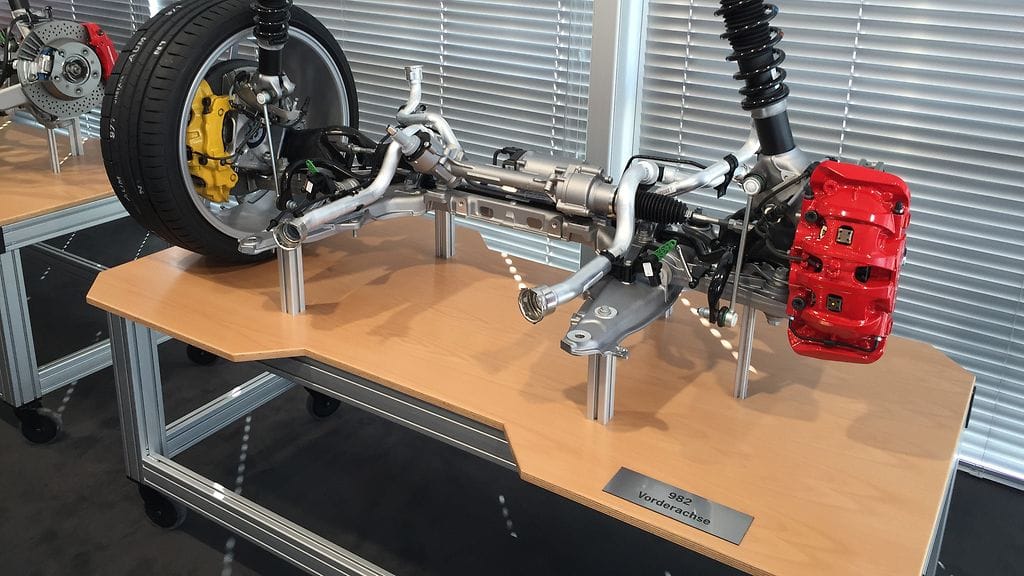 Etuakseliston yhteydessä suurin muutos on ohjaustehostimen vaihtaminen. Uuteen malliin tehostinyksikkö on lainattu 911 Turbosta, mutta toki muokkausten kautta. Ohjausvälitys on noin 10 prosenttia aikaisempaa suorempi, mikä tarjoaa entistäkin suoremman ajotuntuman.