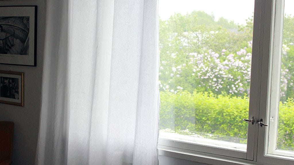 Kokeile esimerkiksi kevyttä ja ohutta harsokangasta joka siivilöi valon sisään kauniisti. Äitiyspakkauksista tuttua kangasta saa metritavarana joka kangaskaupasta muutaman euron metrihintaan. Kangas on tavallista metrikangasta kapeampaa joten tarvitset sitä yhden verhon sijaan kaksi tai jos haluat ikkunan kummallekin sivulle verhon, ota sitä neljä palasta.