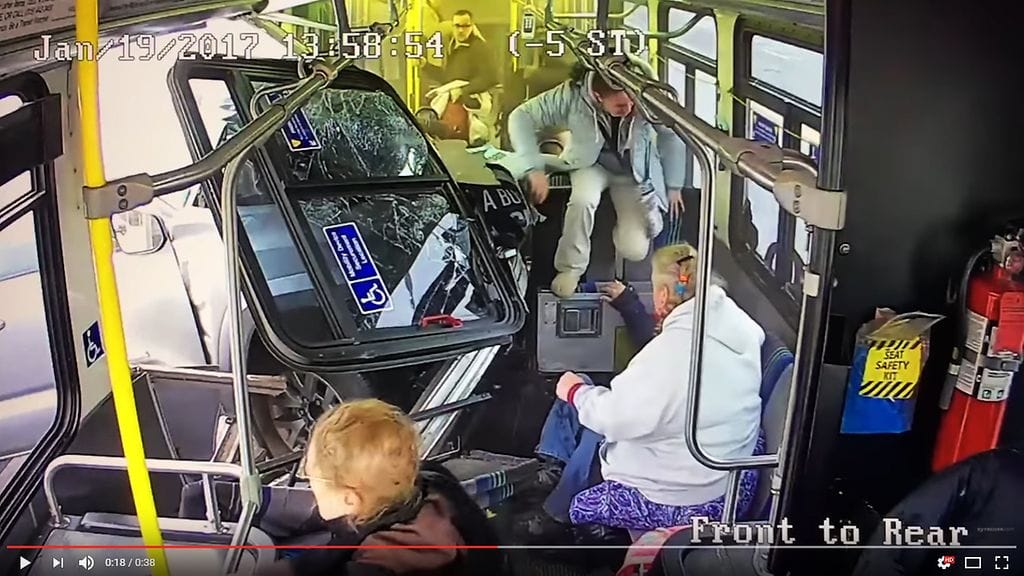 Linja-auton valvontakameraan tallentunut onnettomuus sattui vajaat pari viikkoa sitten Syracusessa Yhdysvalloissa.
