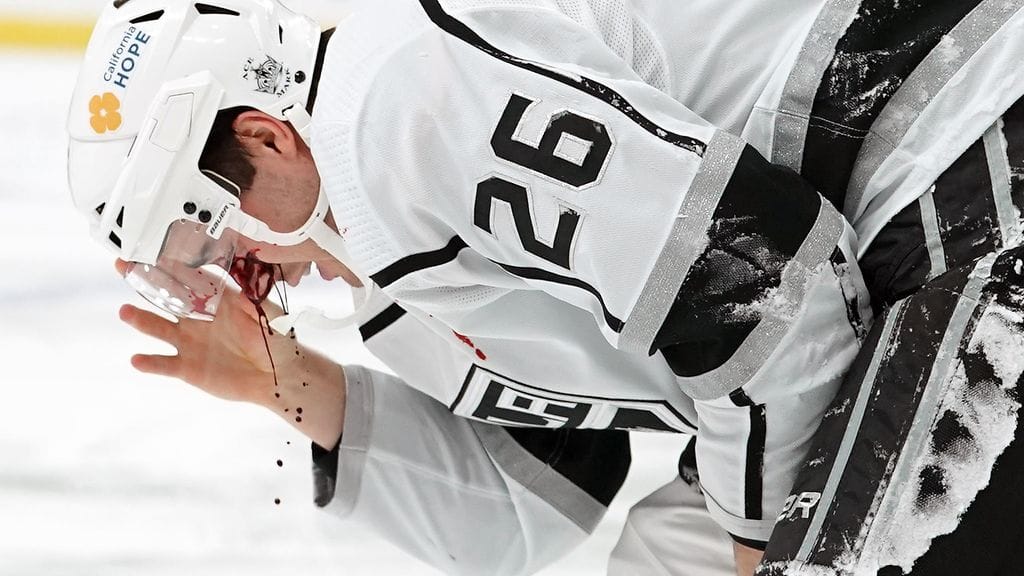 Los Angelesin puolustaja Sean Walkerin koki kovia ottelussa Minnesota Wildia vastaan. Mies talutettiin pois jäältä, kun puolustaja Matt Dumban raju lyöntilaukaus osui häntä kasvoihin.