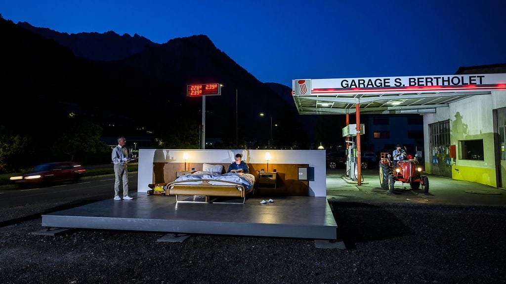 Taiteilijaveljesten nollan tähden hotelli tarjoaa pedin Sveitsin taivaan alla huoltoaseman vieressä.
